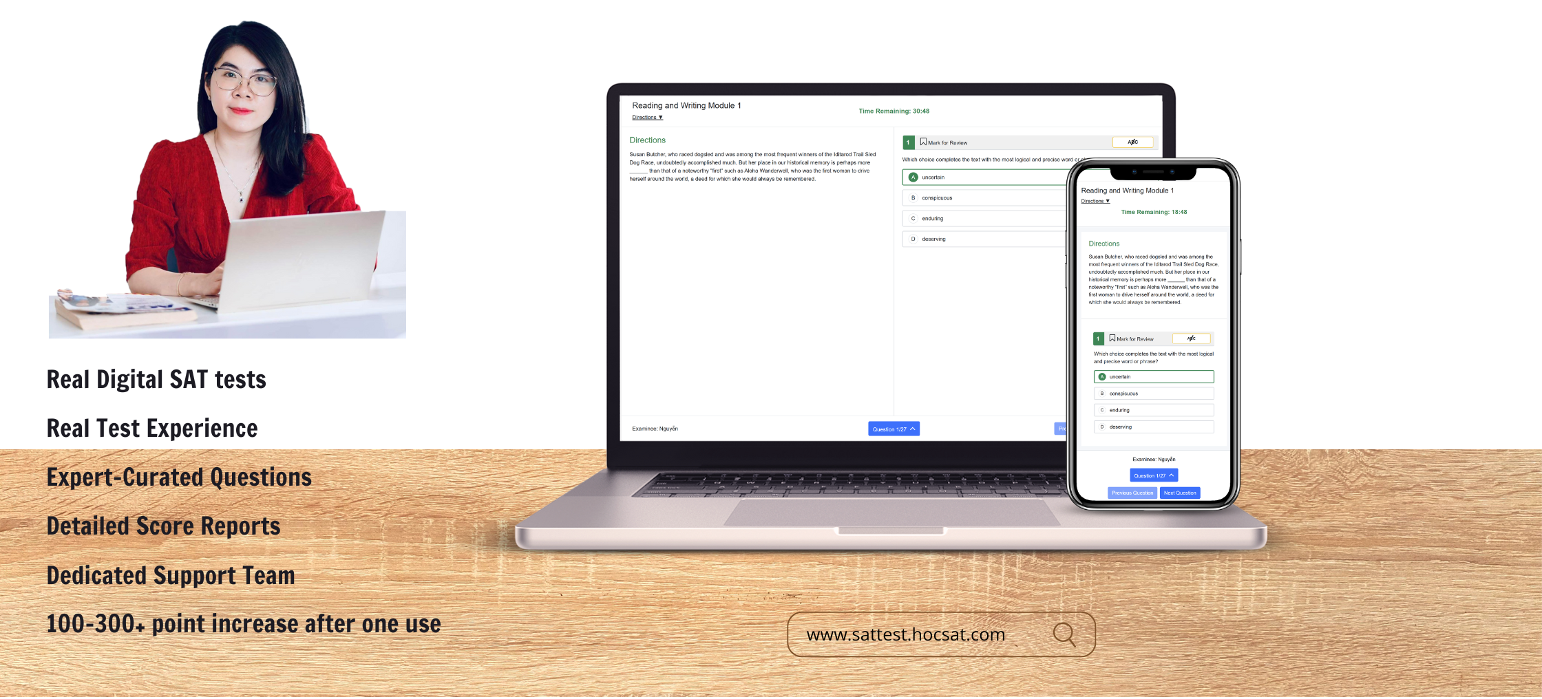 🎓 SAT TEST – Nền tảng luyện thi SAT toàn diện, cá nhân hóa và dẫn đầu bởi AI & đội ngũ giáo viên giàu kinh nghiệm!
